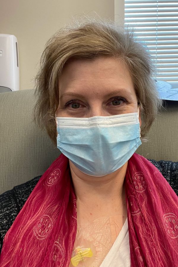 Amy began infusion treatments at Northside in April 2022: three months of infusions every three weeks, a grueling but manageable process thanks to her care team and pre-treatment meds.
